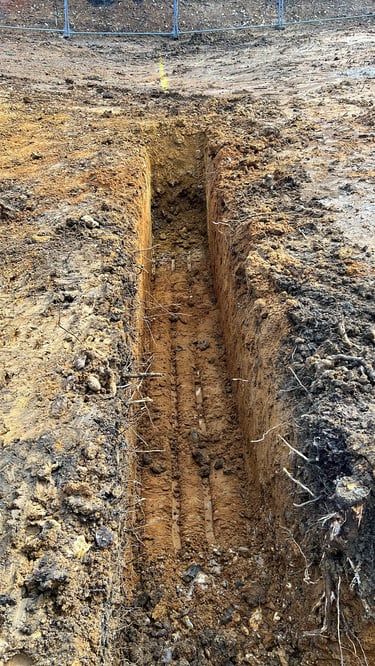 Drainage Trenching - Trenches dug for effective water flow and pipe installation.